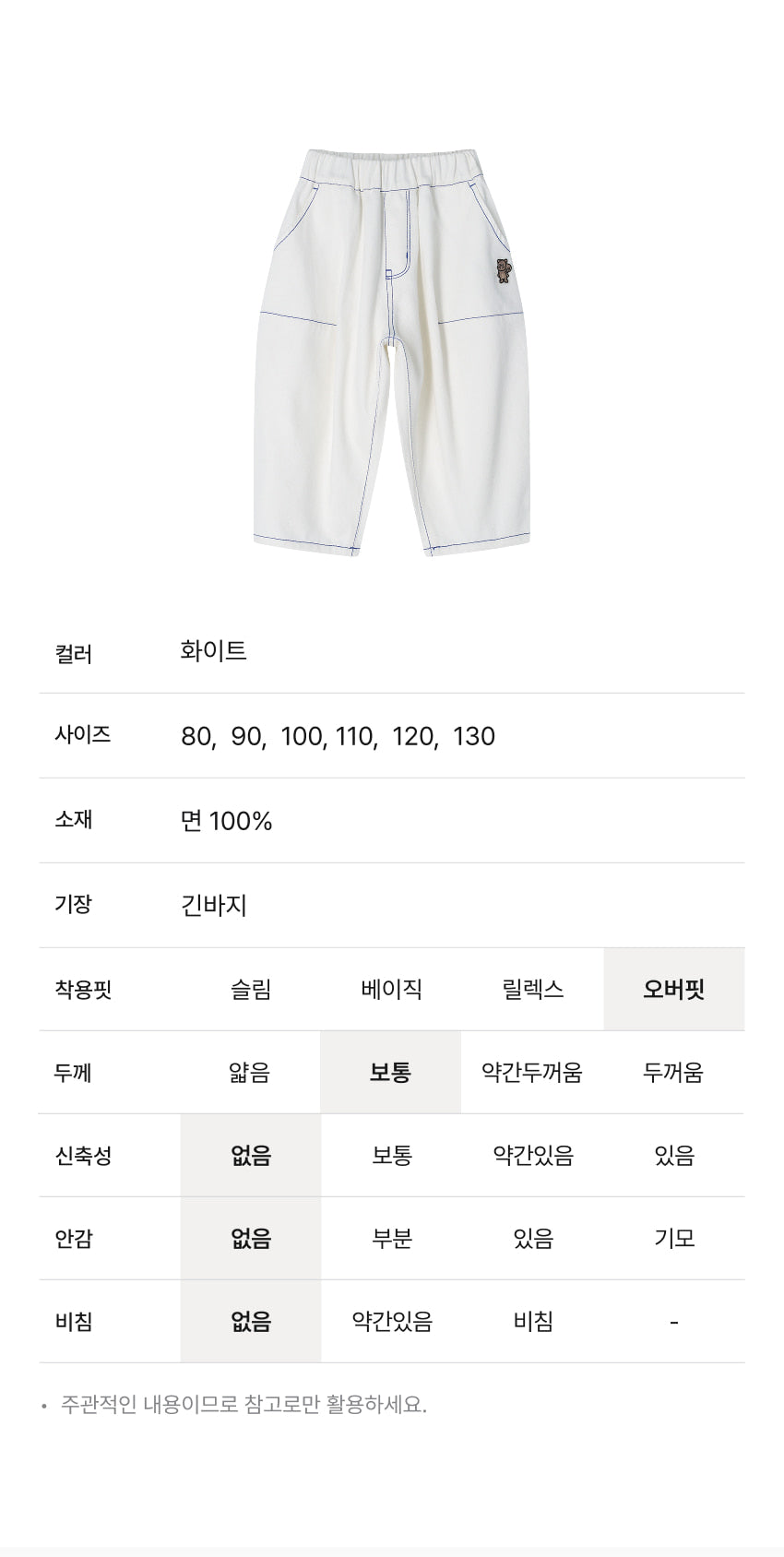 데님 고쟁이 백포인트 팬츠