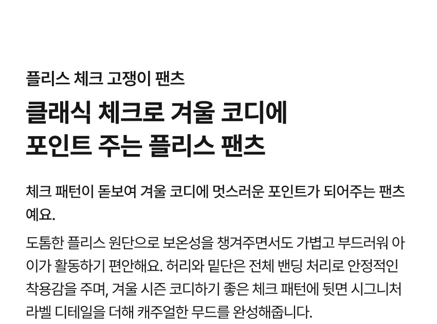 플리스 체크 고쟁이 팬츠