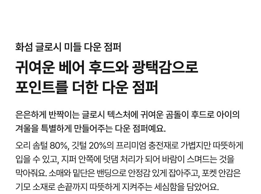 화섬 글로시 미들 다운 점퍼